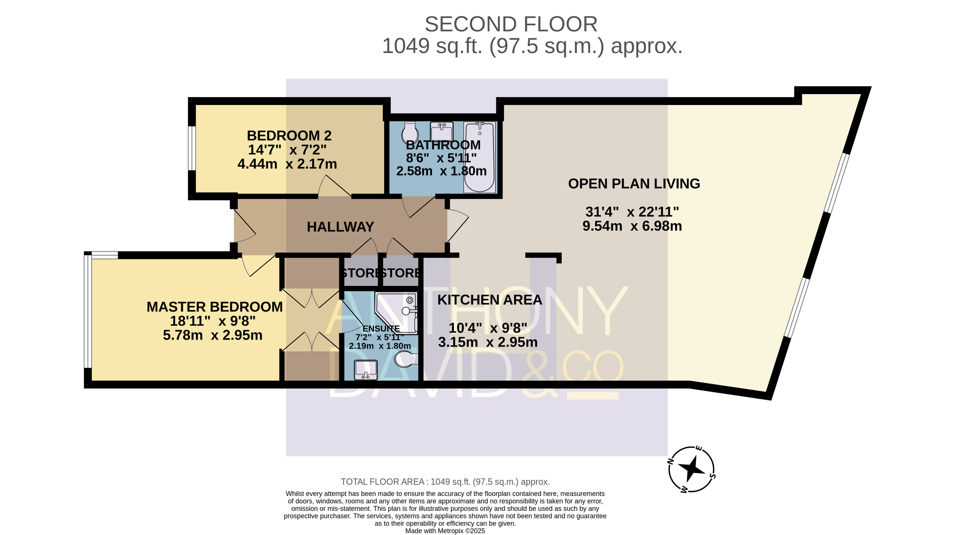 14′ 3″ x 9′ 4″ (4.34m x 2.84m)