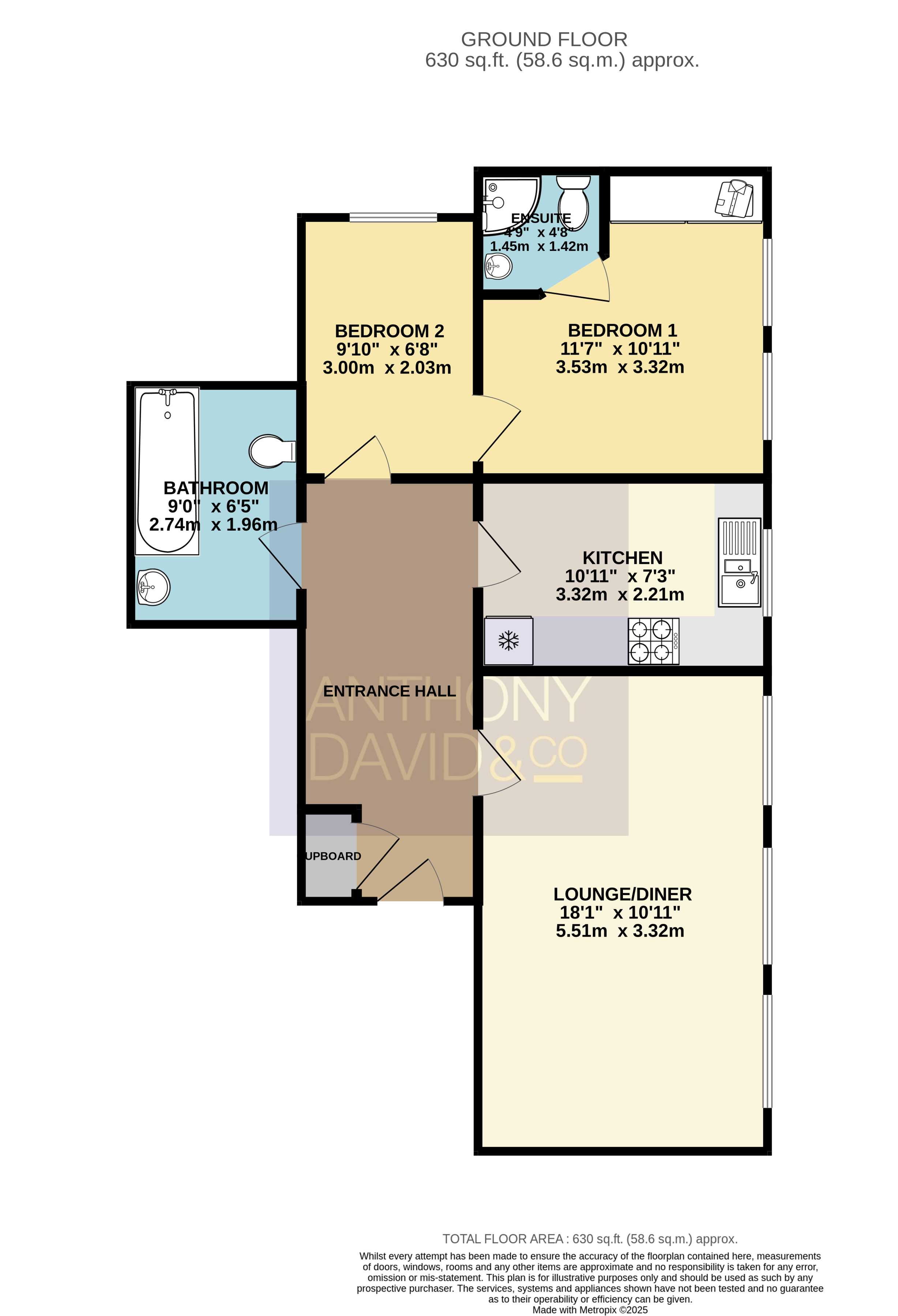 18′ 1″ x 10′ 11″ (5.51m x 3.33m)
