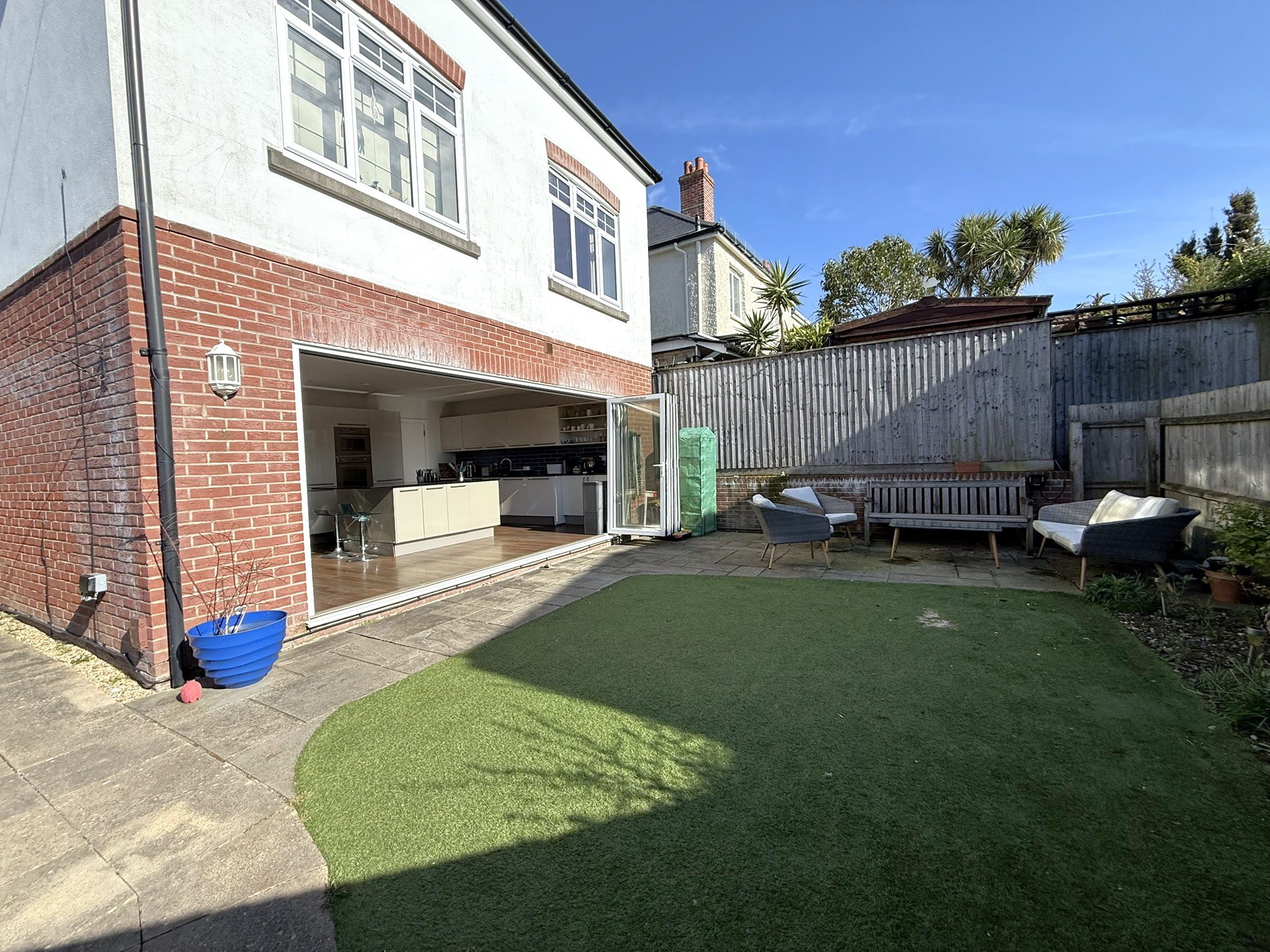 Constructed in 2016 this brilliant five bedroom detached house is conveniently situated on this corner plot between Oakdale and Poole close to local shops, amenities and central bus routes. Poole Hospital and Poole Park with it’s boating lake, restaurant and cricket ground are also just a short distance away. This contemporary home offers over 1450 sq ft of living space set over three floors and internal viewing is an absolute must to appreciate the accommodation on offer which comprises: lounge, bespoke kitchen/diner with direct garden access via bi-fold doors, utility room, downstairs cloakroom, en-suite shower room, bathroom and study/bedroom five to the first floor and luxury en-suite and walk-in wardrobe to the master bedroom on the second floor. Externally there is a delightful South Westerly aspect low maintenance garden with artificial grass and sun patio. To the side the driveway provides tandem off road parking. Further features include: integrated appliances to kitchen (including two fridge/freezers), gas central heating and UPVC double glazing. Nearby Schools – St Mary’s Catholic Primary, Longfleet Primary and Poole High School.