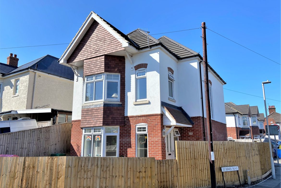 Constructed in 2016 this brilliant five bedroom detached house is conveniently situated on this corner plot between Oakdale and Poole close to local shops, amenities and central bus routes. Poole Hospital and Poole Park with it’s boating lake, restaurant and cricket ground are also just a short distance away. This contemporary home offers over 1450 sq ft of living space set over three floors and internal viewing is an absolute must to appreciate the accommodation on offer which comprises: lounge, bespoke kitchen/diner with direct garden access via bi-fold doors, utility room, downstairs cloakroom, en-suite shower room, bathroom and study/bedroom five to the first floor and luxury en-suite and walk-in wardrobe to the master bedroom on the second floor. Externally there is a delightful South Westerly aspect low maintenance garden with artificial grass and sun patio. To the side the driveway provides tandem off road parking. Further features include: integrated appliances to kitchen (including two fridge/freezers), gas central heating and UPVC double glazing. Nearby Schools – St Mary’s Catholic Primary, Longfleet Primary and Poole High School.