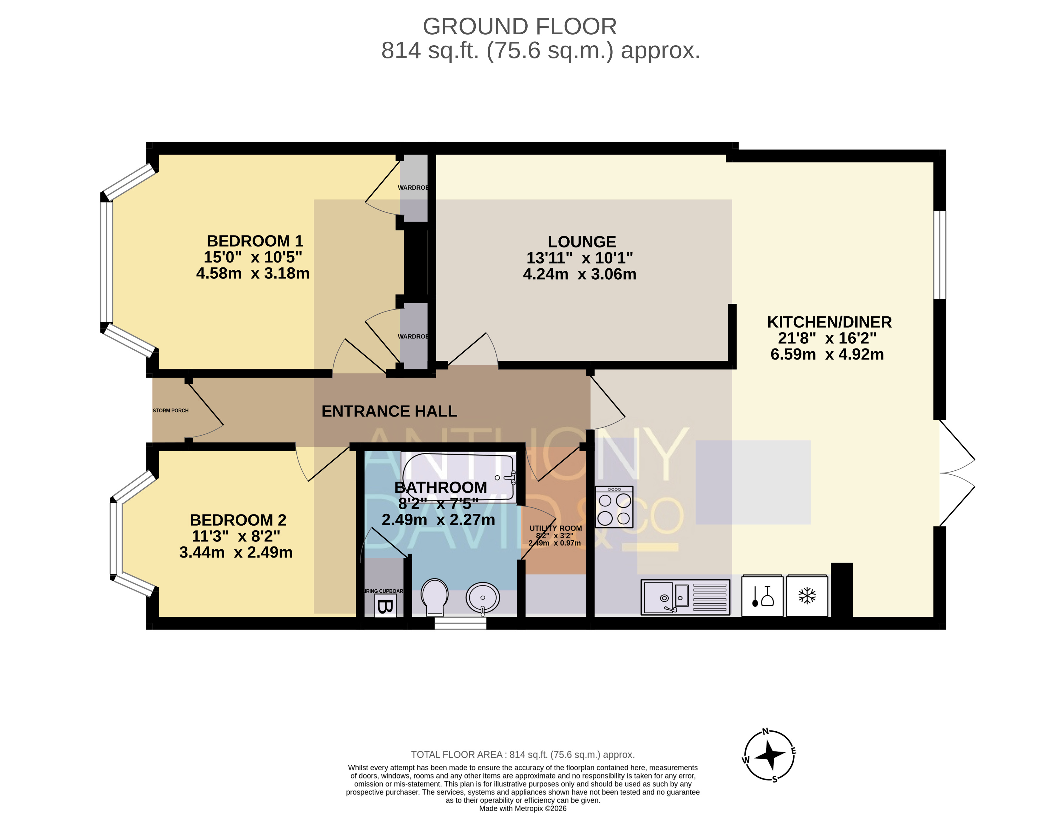 21′ 8″ x 16′ 2″ (6.60m x 4.93m)