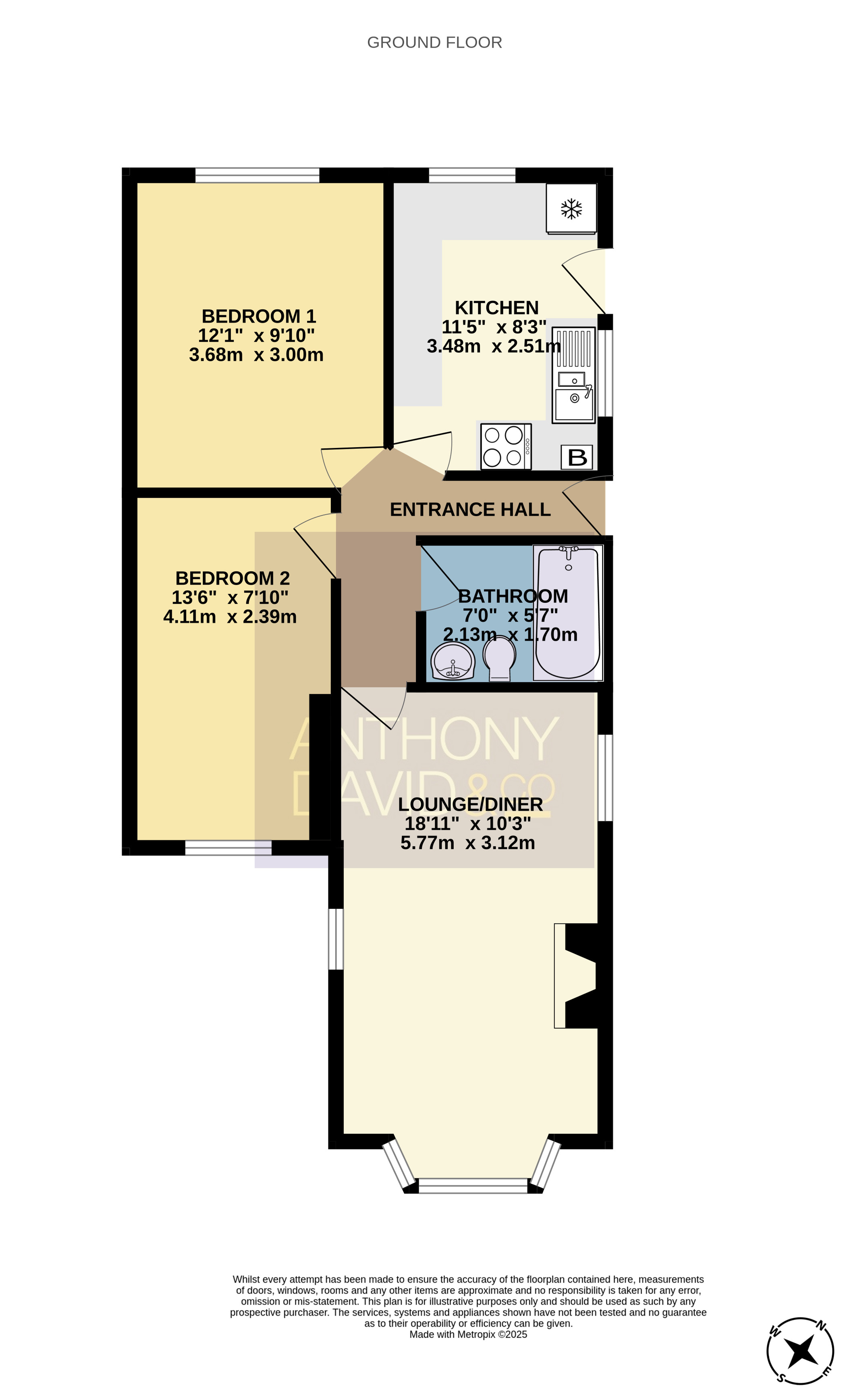 7′ 0″ x 5′ 7″ (2.13m x 1.70m)