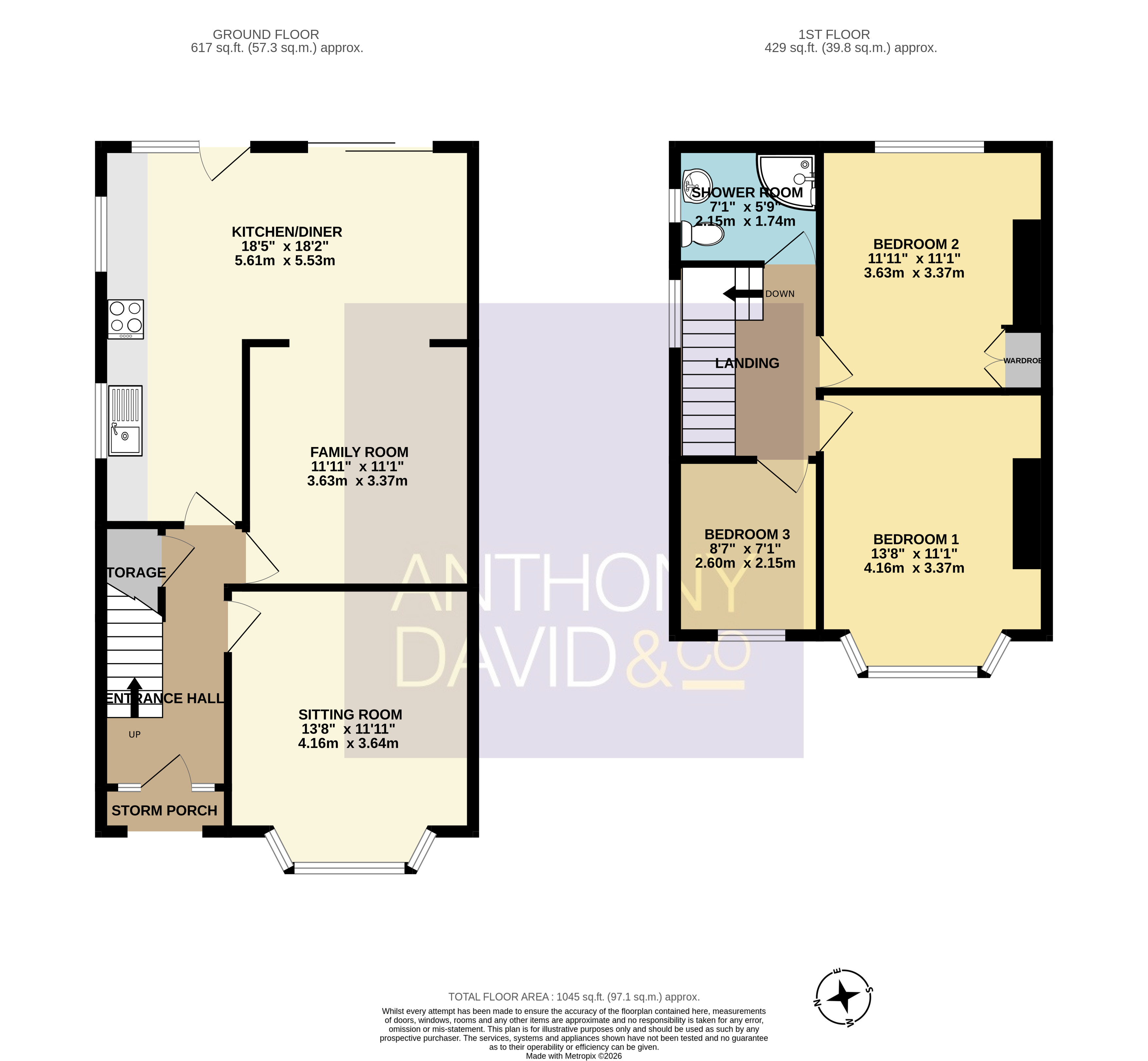 13′ 8″ x 11′ 1″ (4.17m x 3.38m)